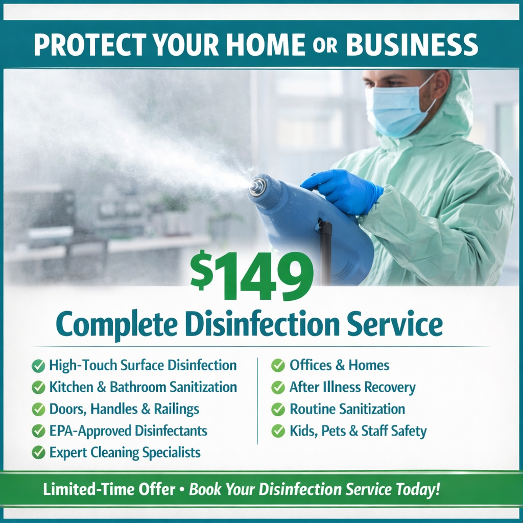 Our services are tailored to your needs and budget, incorporating comprehensive cleaning and disinfection or serving as standalone options for residential, commercial, and medical facilities.